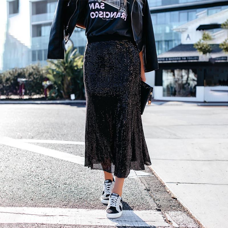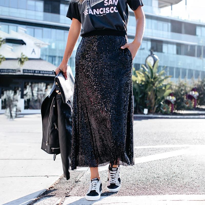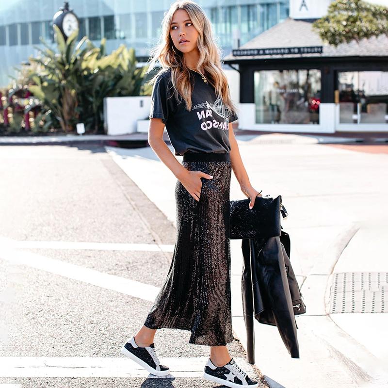 Black sequins plain loose skirt
