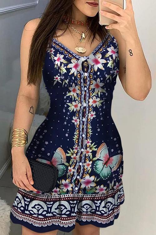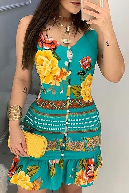 Button Floral Print Slip Dress