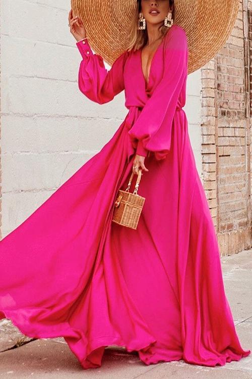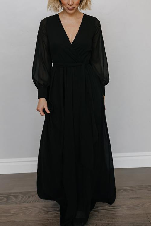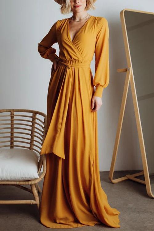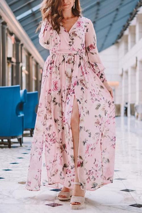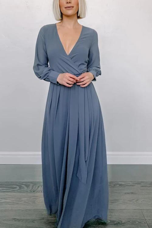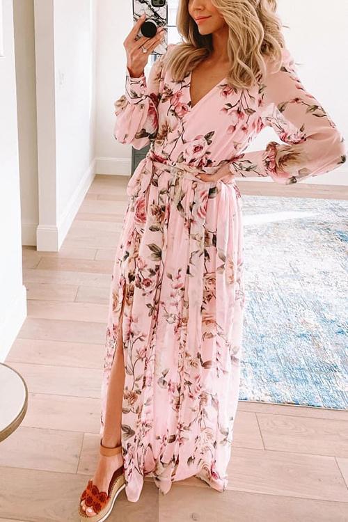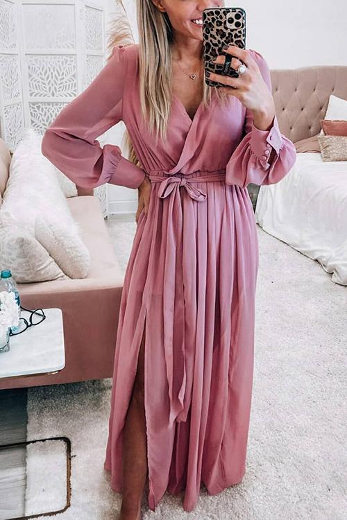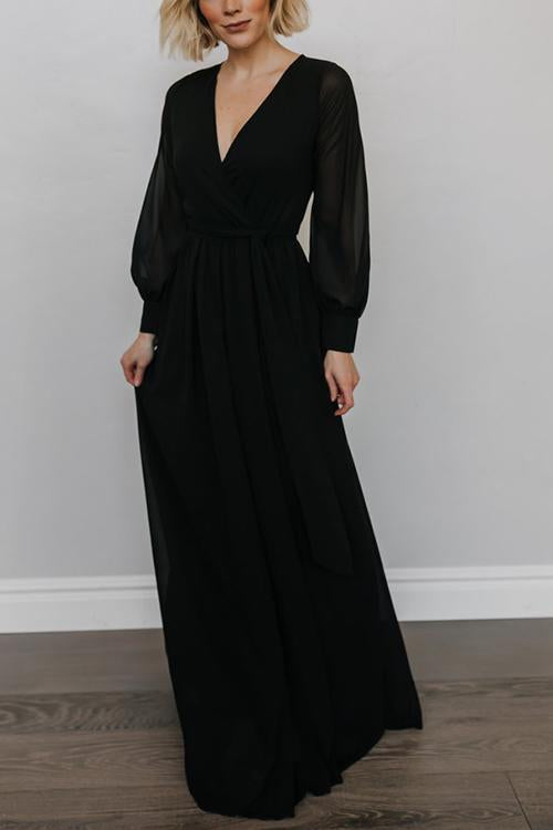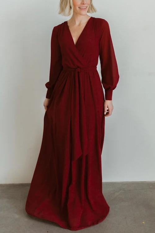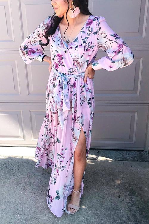 This adorable maxi dress is perfect for making a statement! We love the gorgeous surplice style and tie front detail. The bodice features a v-neckline and beautifully delicate semi-sheer sleeves for an amazing look. We love pairing this maxi with a beautiful bracelet set and wedges!