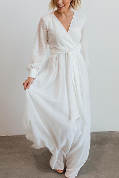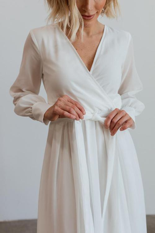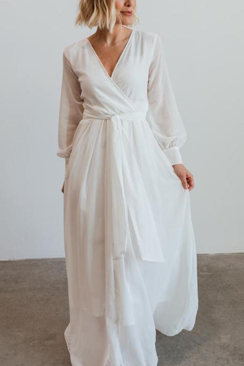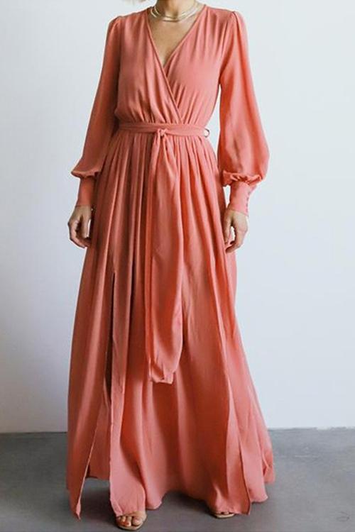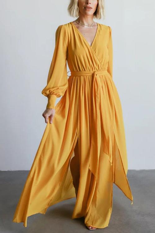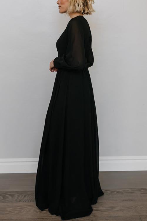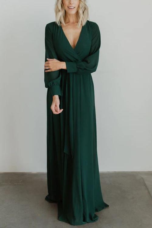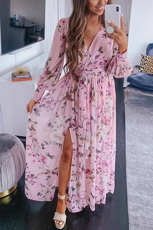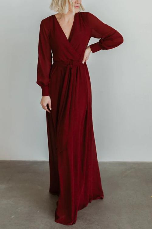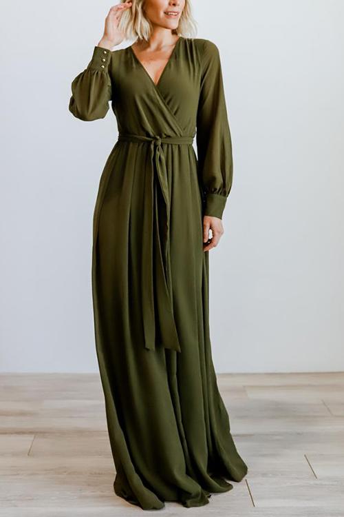 This adorable maxi dress is perfect for making a statement! We love the gorgeous surplice style and tie front detail. The bodice features a v-neckline and beautifully delicate semi-sheer sleeves for an amazing look. We love pairing this maxi with a beautiful bracelet set and wedges!