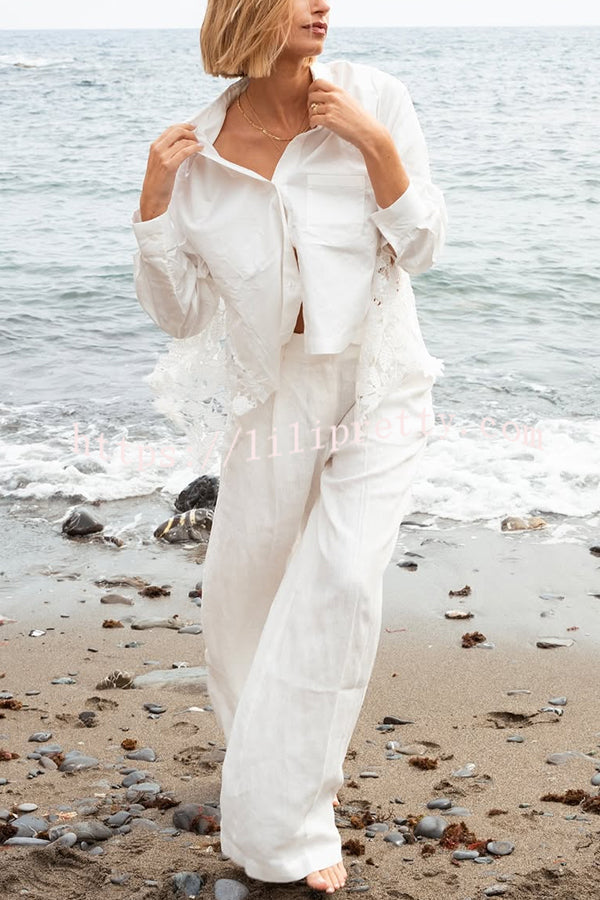 - This shirt redefines the classic with a touch of femininity. The floral lace detail on the back adds an unexpected element, transforming an essential piece into a style statement. Versatile and refined, it perfectly adapts to the office or an aperitif, pairing beautifully with tailored trousers or a pencil skirt for an elegant and modern look.Our distinctive clothing will add instant style to your wardrobe.