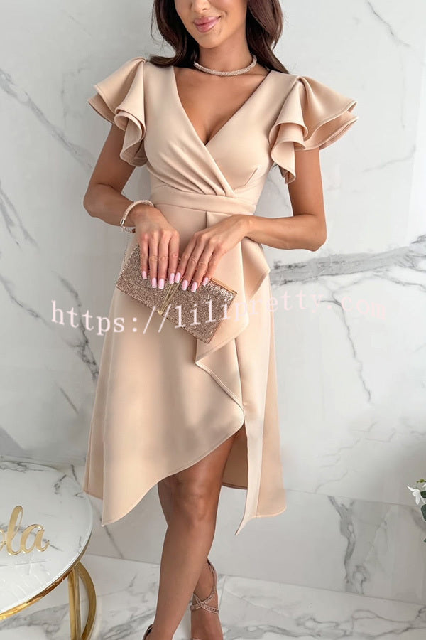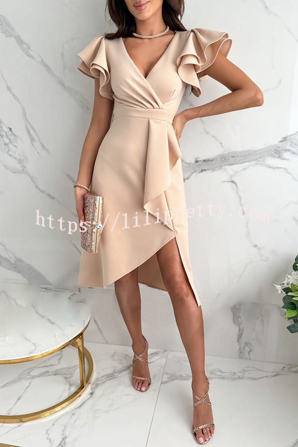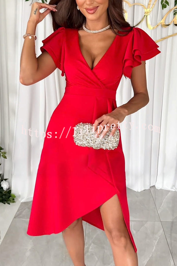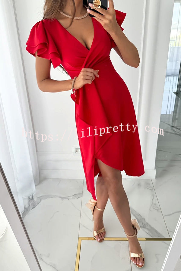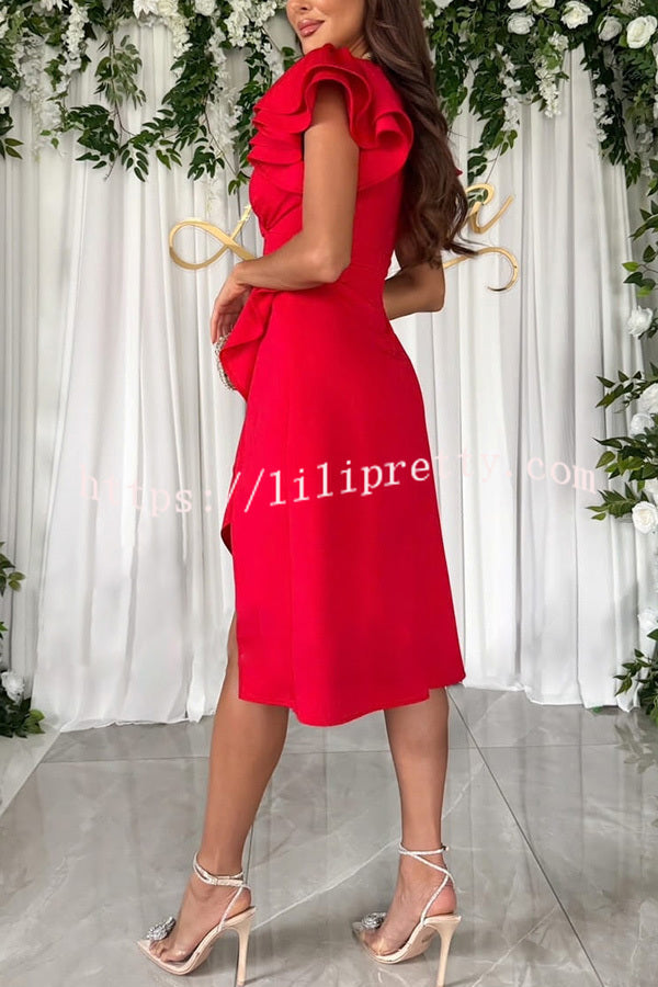 - This ruffled piece adds lightness and sophistication to the entire look. Its flared cut subtly accentuates the feminine shape while creating an impressively elegant look. The short sleeves give it an elegant appeal and unique personality while ensuring lightness and freedom of movement.
