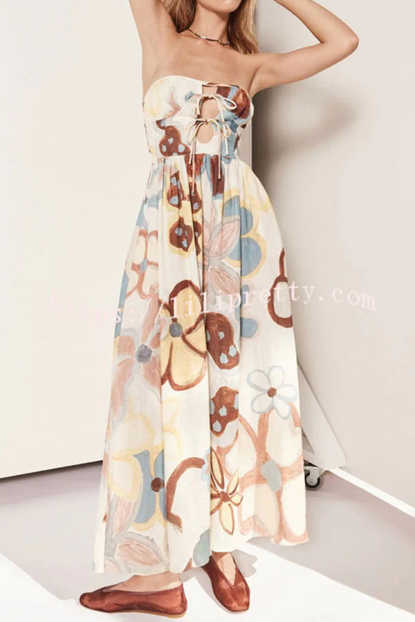 - It's made from linen fabric that features hand painted florals by our in-house designers. This dress is an amazing fit featuring a lace up bust and back waist that you can adjust to suit you.Our distinctive clothing will add instant style to your wardrobe.