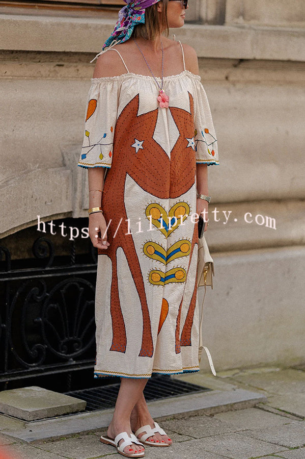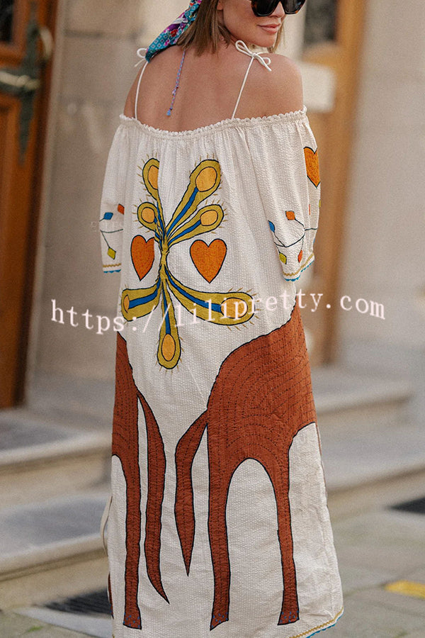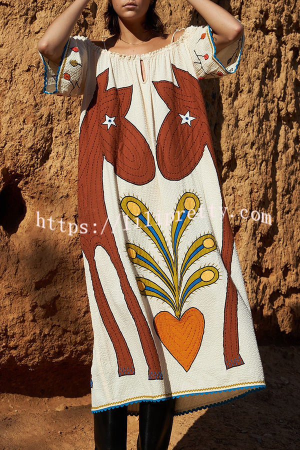 - Adds the right amount of cowboy vibe to your wardrobe. It has a loose fit and a long length. The dress has two horses embroidered on the front, continuing around the back. Cute details, such as small beads embroidered as the horse's eyes, on the sleeves as little leafs and decorative edgebands. Loophole on the chest.