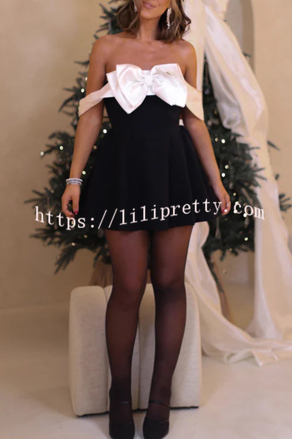 • Stand out in style with this mini dress designed to make any special event feel fabulous. The perfect balance between chic and classic, while the satin fabric neckline is accented with a bow, giving you an unforgettable off-the-shoulder look that's perfect whether you're celebrating with friends or attending a special evening.