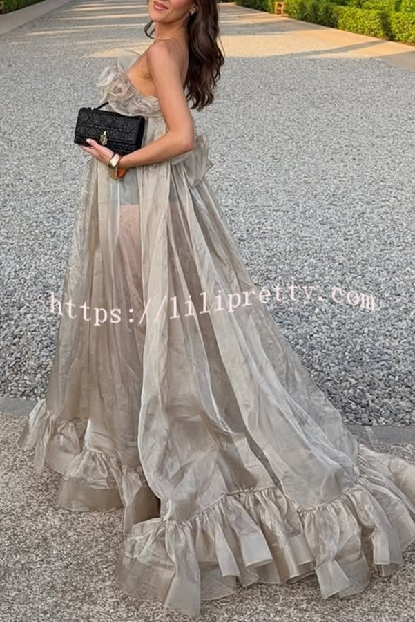- ?A maxi gown featuring a high-low hemline with statement ruffle details, a low back, finished with a ruffle detail at neckline and adjustable self tie centre back closure.Our distinctive clothing will add instant style to your wardrobe.