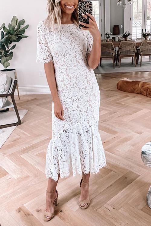 I adore like pretty things. I Can’t Resist them; it’s in my DNA. So when the prettiest of pretties came along and called me a confection of perfection, how can we be expected to resist each other? You, the gorgeous fashionista, me, the elegant lace midi dress of your dreams. Um, yeah. It's destiny. Lace dress features a boat neckline, short sheer sleeves, a bodycon fitted structure, and a godet midi skirt.