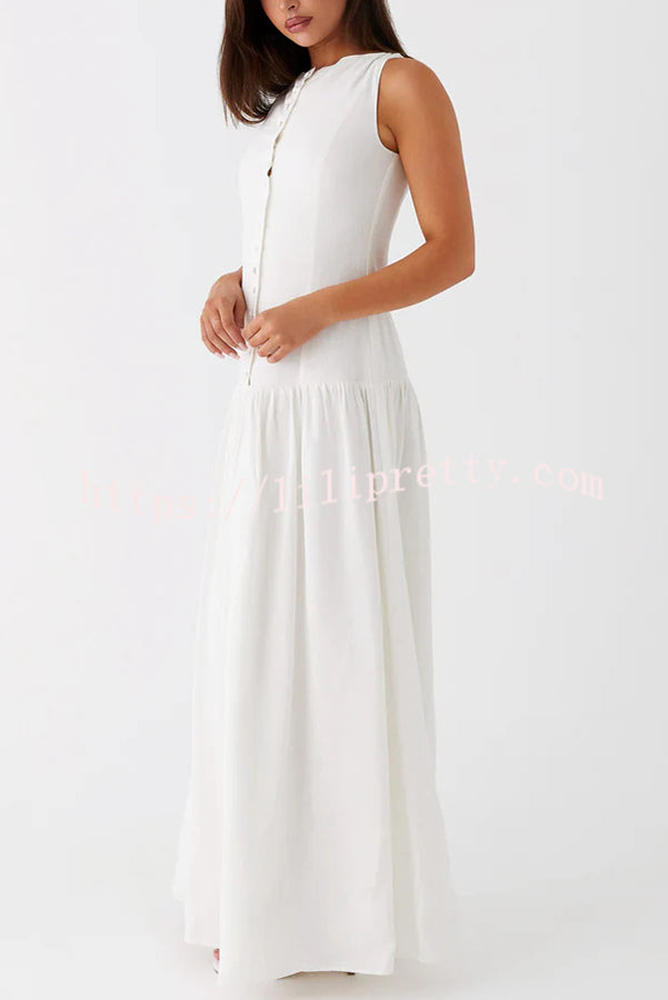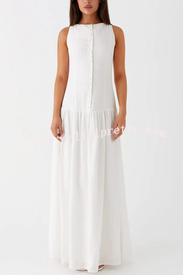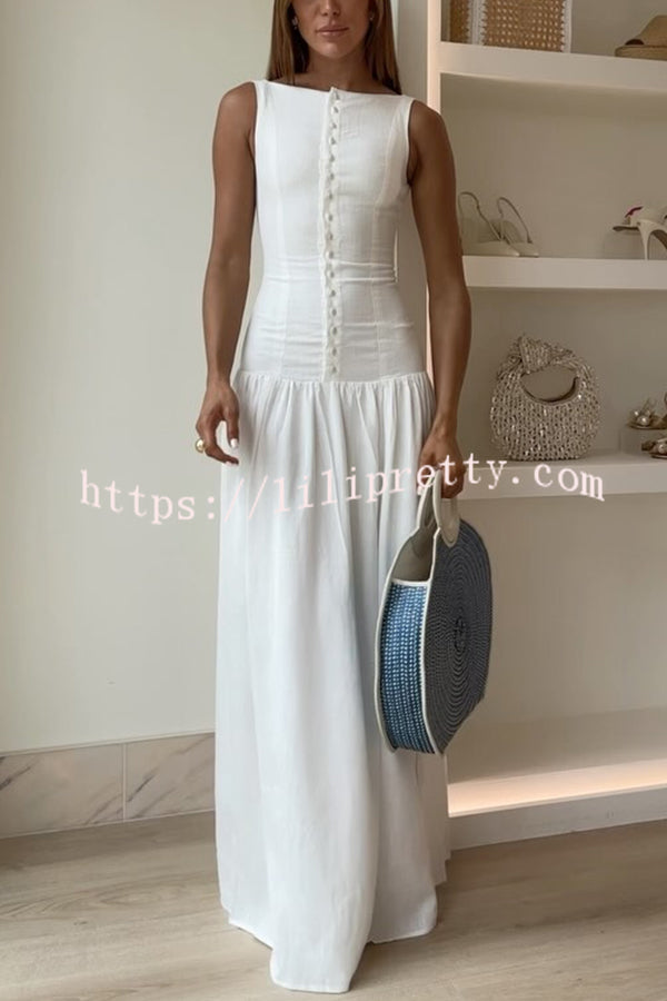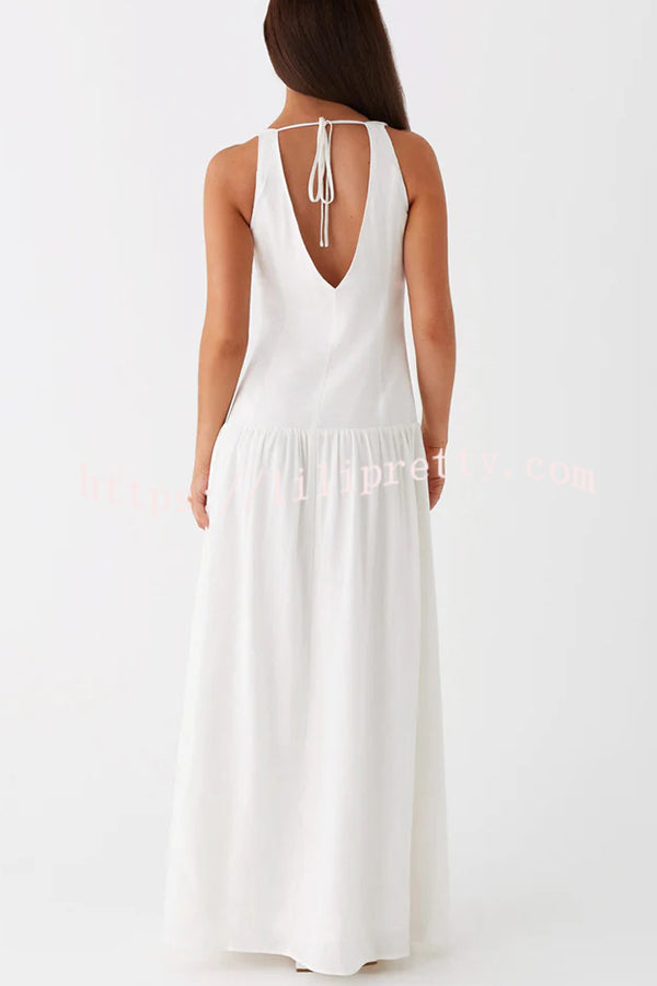 - Embrace the magic of the evening in this linen-blend maxi dress. Featuring a round neckline, tie-back and drop waist, this dress is designed for golden skies, warm evenings and unforgettable evenings.Our distinctive clothing will add instant style to your wardrobe.
