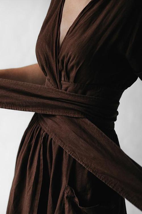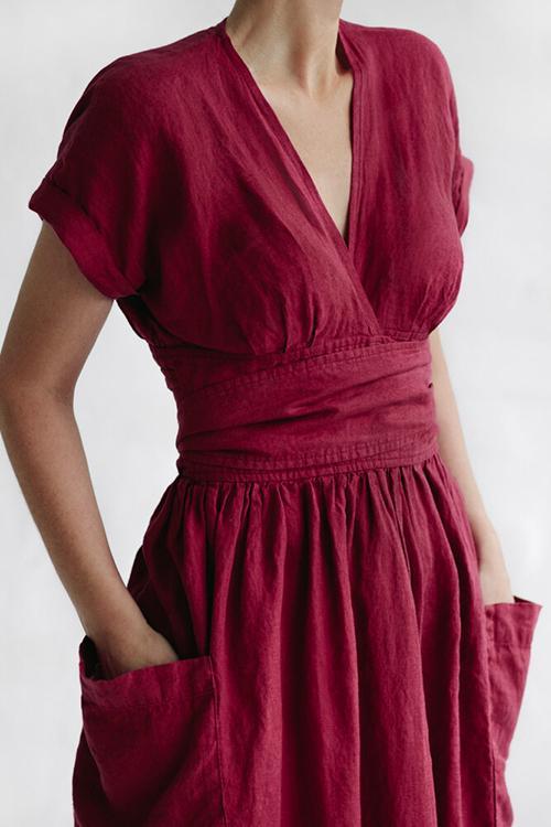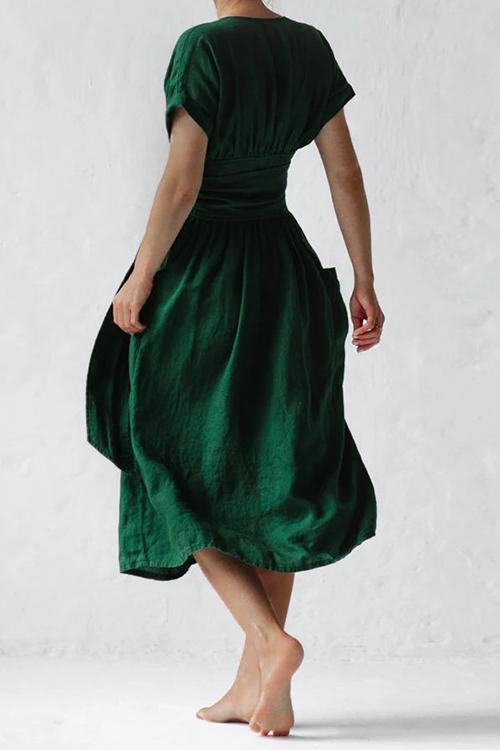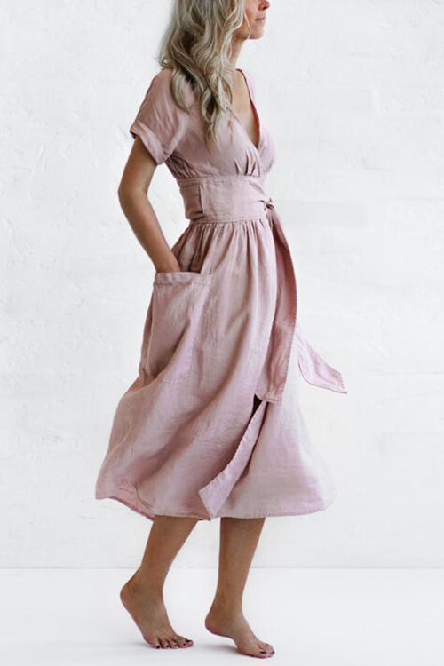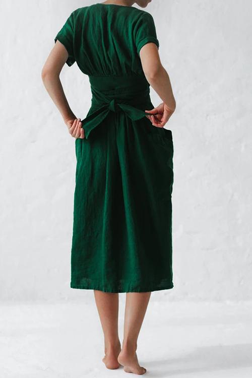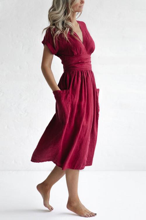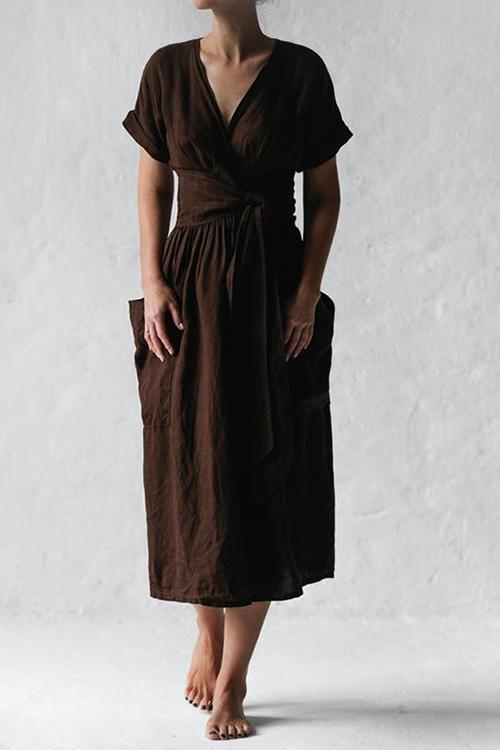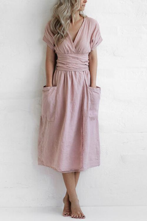 Pockets V Neck Kimono Dress
