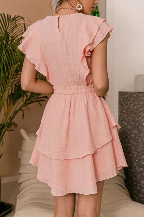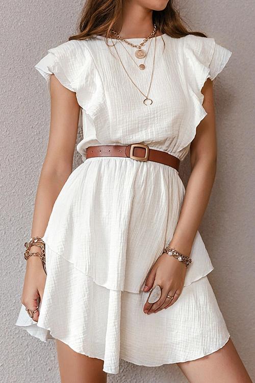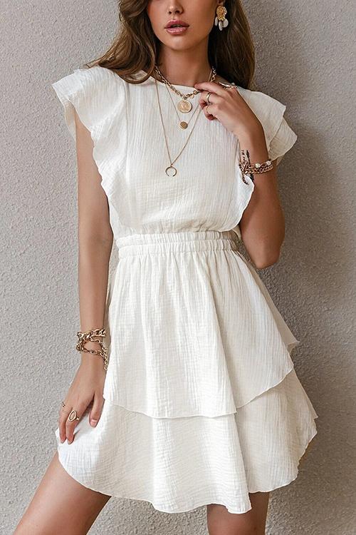 We've never met a ruffle we didn't like and this Edge Dress is no exception. This features double ruffled flutter sleeves which cascade down the front and back of the body to highlight the elasticated waist. Intricate inset lace trims add an air of femininity and ease. Style yours with a tousled high bun, gold earrings and a strappy heel!