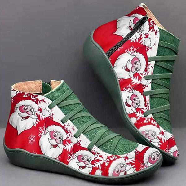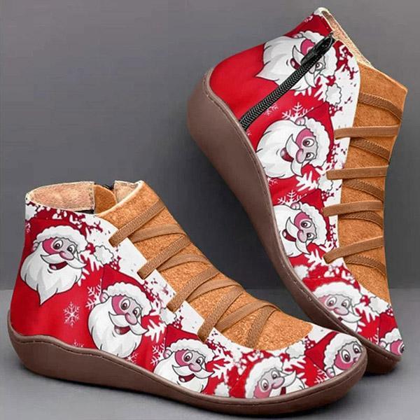 Lydiashoes Santa Printed Zipper Flat Boots