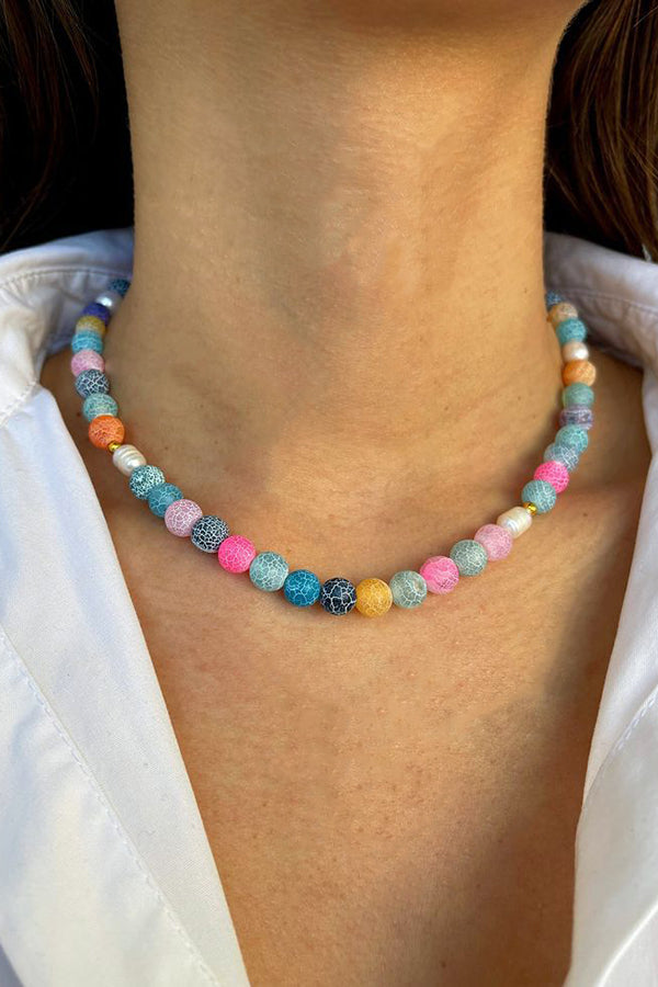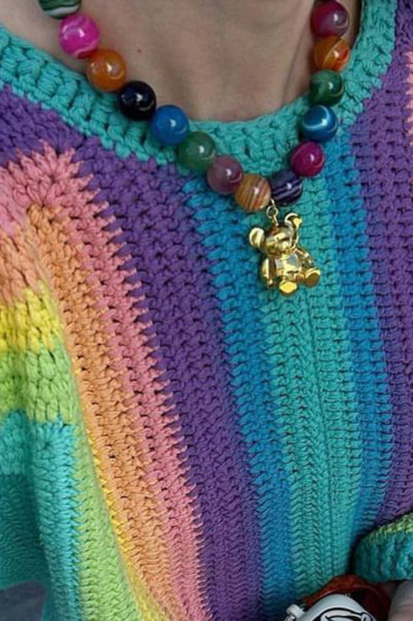 Simple Colorful Agate Bear Pendant Necklace