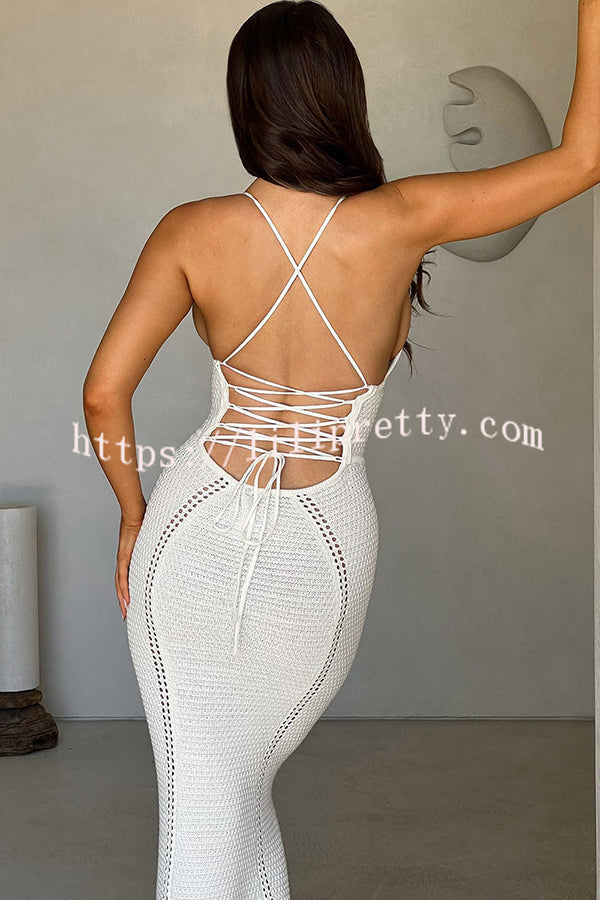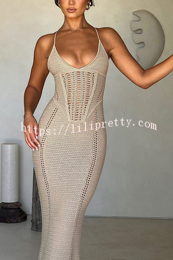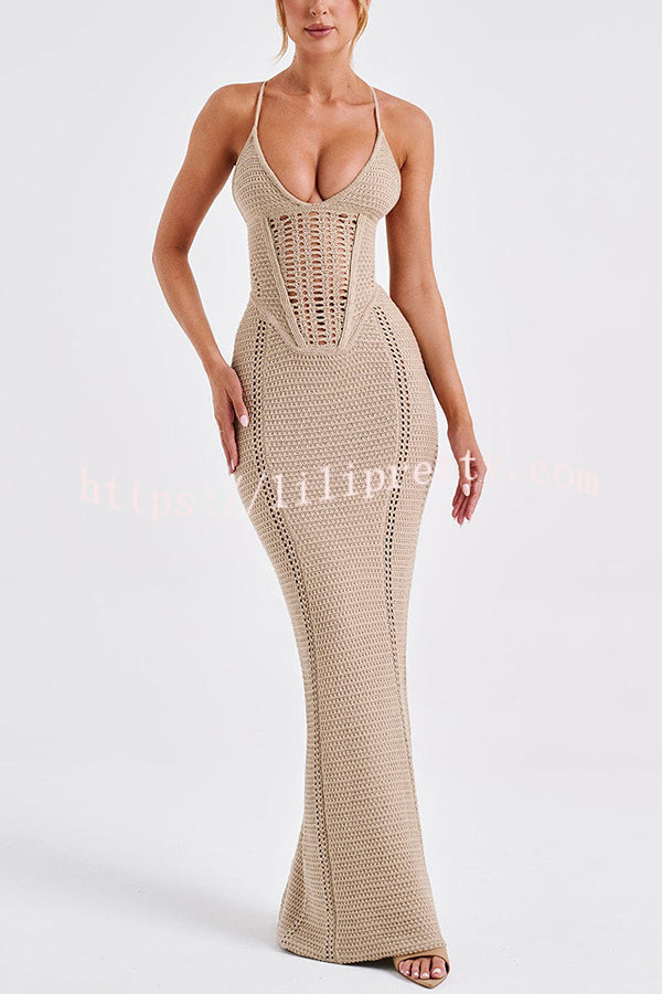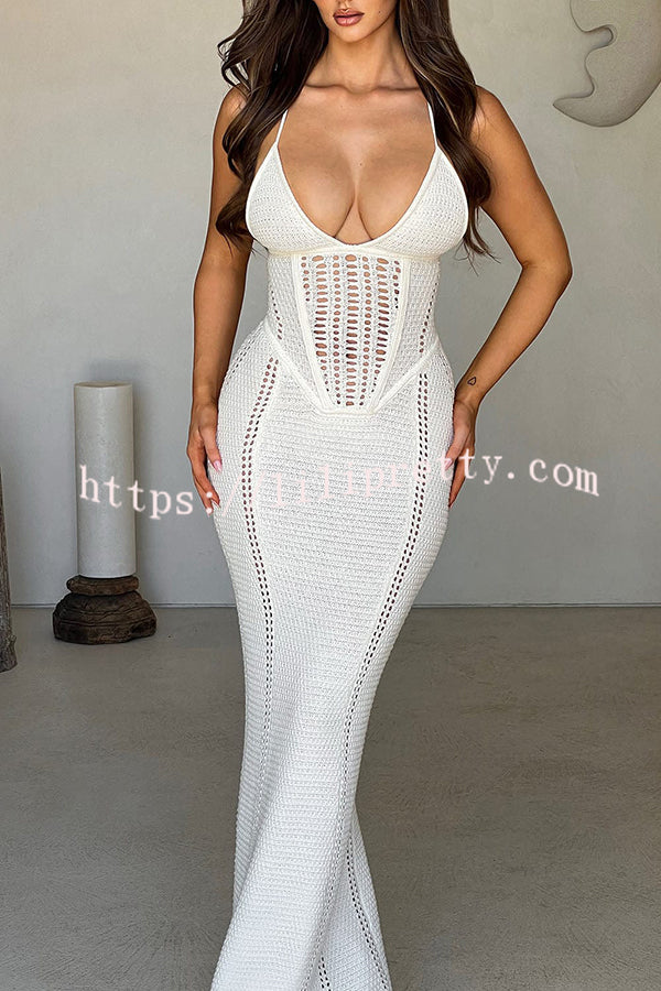 - A warm-weather favorite and the ultimate choice for your vacation, it's made from premium crochet-knit fabric with a ribbed bodice for a snug fit. The design features triangle cups, eyelet detailing at the front and a stunning backless tie. Pair it with simple gold jewelry and beachy waves.