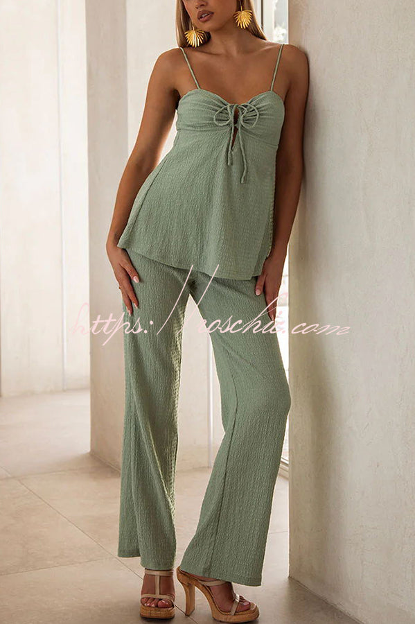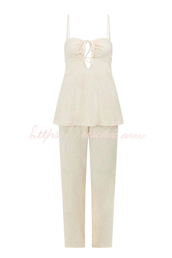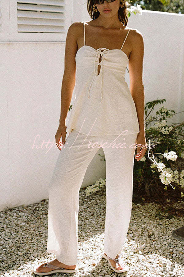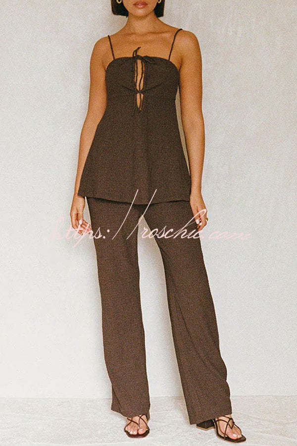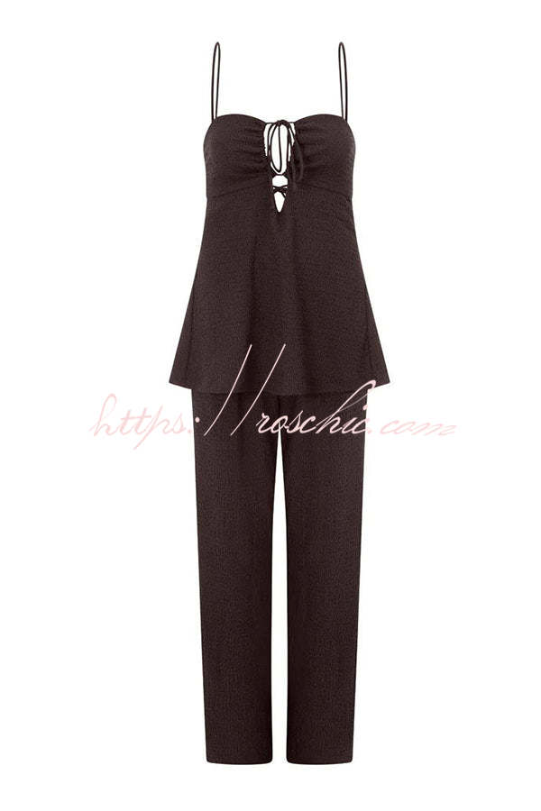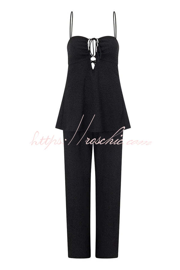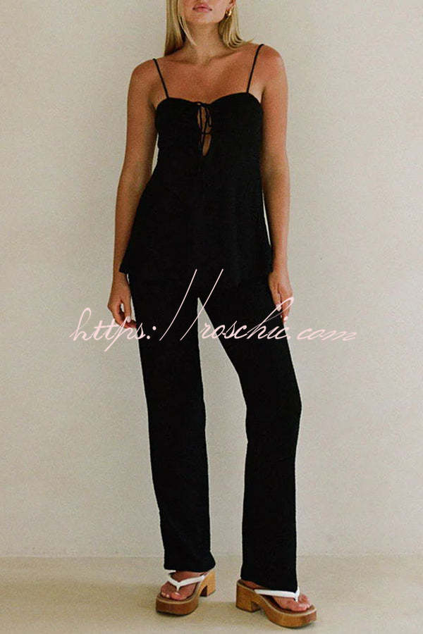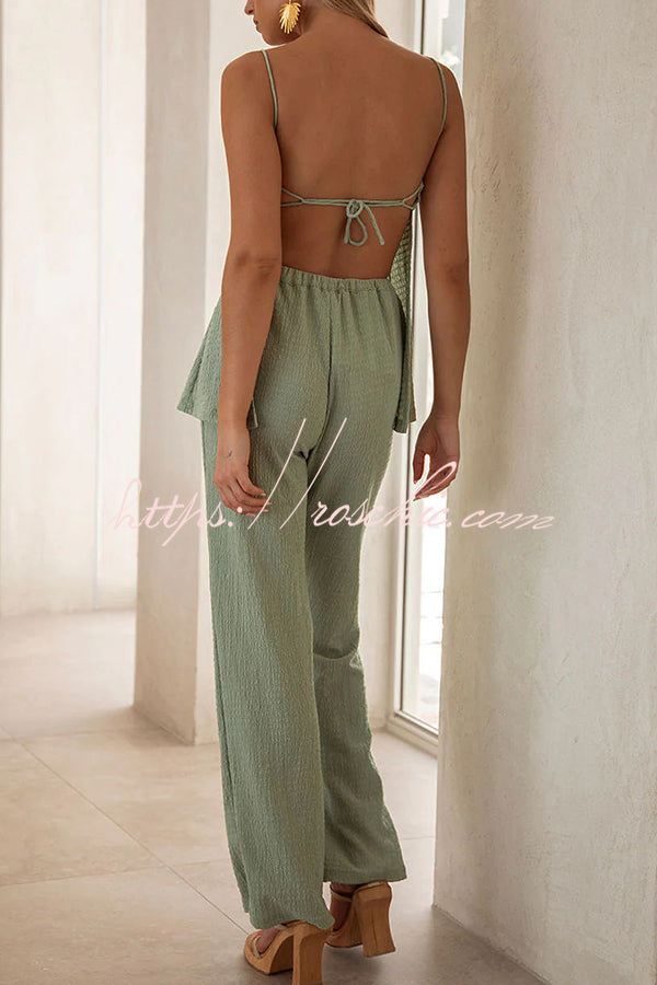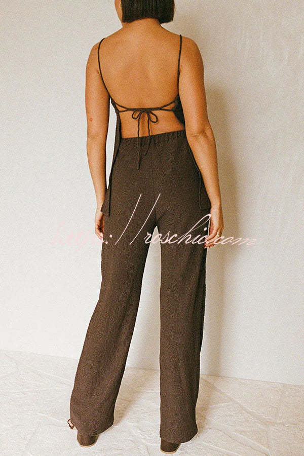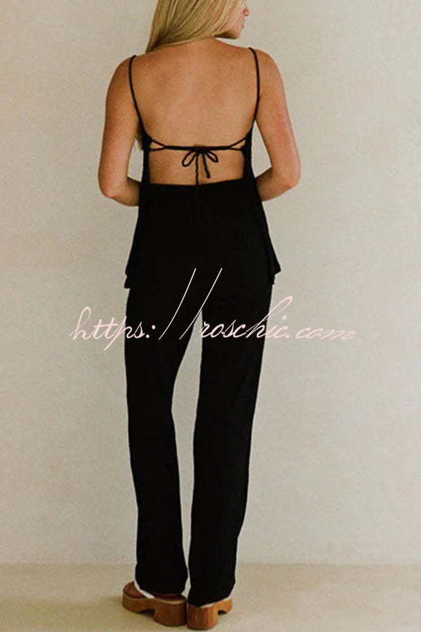 - Super wearable with a cute look that will take you from day to night! This jumpsuit is made from textured woven fabric. It features a lace-up detail at the center of the bust with cutouts, a long ruffled top with an open back, lace-up, and track pants. Add strappy heels for a super chic look!