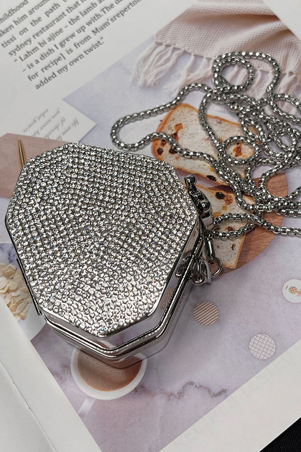 Fashionistas will be thrilled with this bag! Decorated with rhinestones and a long chain, this bag is a trendy eye-catcher and can even be used as a jewelry box.