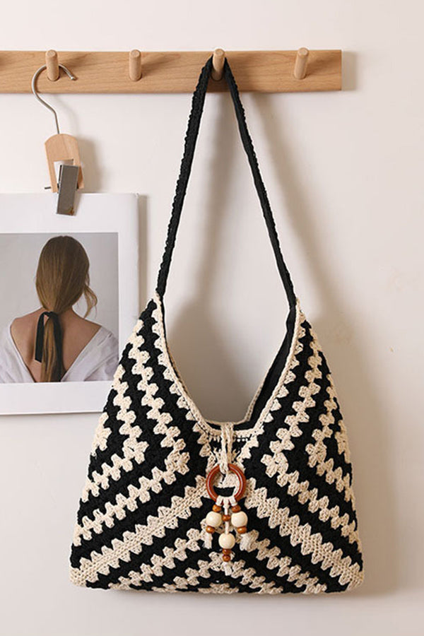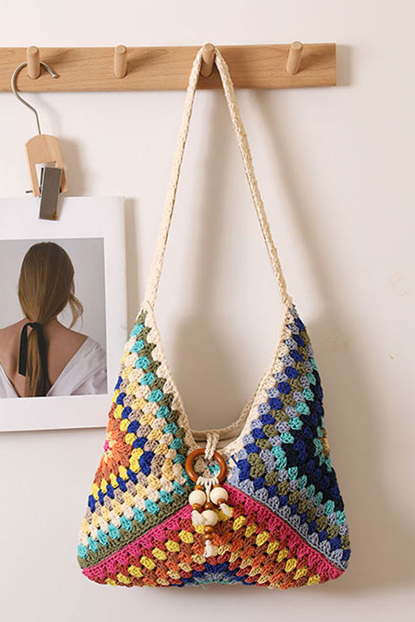 This is an open colorful granny lattice crochet bag. Ethnic style shoulder bag, suitable for daily use and vacation. Bring you a fashionable match!